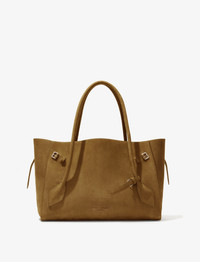 The Tate Bag is crafted in nubuck calf to a large satchel, featuring two handles that extend from the lowest point of the bag, complemented by a keeper strap to hold the handles together. Refined with a front flap closure that can either be tucked into the bag opening or worn outside. The design is accentuated by buckles on both sides, a back slip compartment, and metal feet along the bottom for added protection. Details - Tobacco - Nubuck Calf - Large satchel - Two handles - Keeper strap - Front flap closure - Side buckle details - Back slip compartment - Protective metal feet - Silver-tone hardware - Suede lined - Embossed logo at center bottom - 100% calfskin - SKU: HB251081C328S210 Size & Fit - W: 38cm x H: 26.5cm x D: 15cm - Shoulder Drop Length: 21cm Care - 100% calfskin - Our bags are hand crafted using genuine leather. Variations in tone, marks or grain are common and should not be considered imperfections. Like all natural materials, leather reacts to the atmosphere. Humidity, rain, and sunlight can damage leather. Should a slight white coating appear on the surface of the leather, it can easily be removed using a dry cloth. Should the leather get wet, please absorb the water immediately with a dry cloth. Overexposure to sunlight can stain or alter the color of the leather.