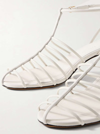 EDITORS'NOTES There's something so chic about the cage-like construction of Proenza Schouler's sandals. Made from leather, they have a series of slim straps anchored by a central T-bar. The 60mm heels are slightly fluted, which is both more stable and visually interesting. SIZE & FIT - Fits true to size, take your normal size - Italian sizing DETAILS & CARE - Heel measures approximately 60mm/ 2.5 inches - White leather (Sheep) - Buckle-fastening ankle strap