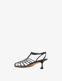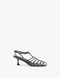 The Tee Cage Sandals are crafted to a caged silhouette with a 60mm heel. Features slender t-crossed straps that span across a rounded toe and are completed with a small buckle fastening at the ankle. Details - Black - 60mm heel - Caged silhouette - Open round toe - Ankle strap - Small buckle closure - Logo footbed - Upper: 100% lamb leather; Sole: 100% calfskin - SKU: SH251005L001A001 Size & Fit - True to size Care - Upper: 100% lamb leather; Sole: 100% calfskin - Please refer to care instructions provided with your order.