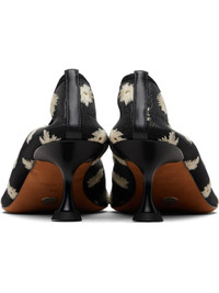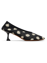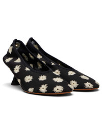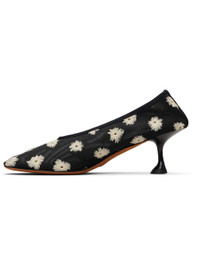 Mesh heels. · Embroidered floral pattern and perforations throughout · Kitten heel with rubber injection · Calfskin nubuck sole · Heel: H2.25" Supplier color: Black/Resin Upper: textile. Sole: calfskin. Made in Italy 252288F122000