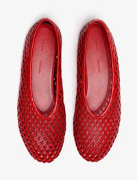 The Tee Perforated Ballerina Flats are crafted in nappa leather to a fitted slip-on silhouette with soft perforation. Details - Red - Soft net perforation - Reinforced silhouette - Round toe - Low stacked heel - Logo footbed - Matte lining - Upper: 100% lamb leather; Sole: 100% calfskin - SKU: SH251015AL001FC620 Size & Fit - True to size Care - Upper: 100% lamb leather; Sole: 100% calfskin - Please refer to care instructions provided with your order.