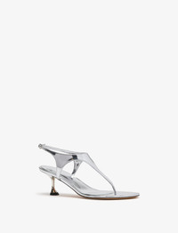 The Tee Thong Sandals in Mirrored Metallic are crafted in leather with a metallic fabric upper to achieve a mirrored finish. Features a T-strap silhouette with a side buckle closure. Details - Silver - Mirrored Metallic - 60mm heel - T-strap upper - Side buckle closure - Upper: 100% polyurethane; Lining: 100% lambskin - SKU: SH252042AF001A041 Size & Fit - True to size Care - Upper: 100% polyurethane; Lining: 100% lambskin - Please refer to care instructions provided with your order.