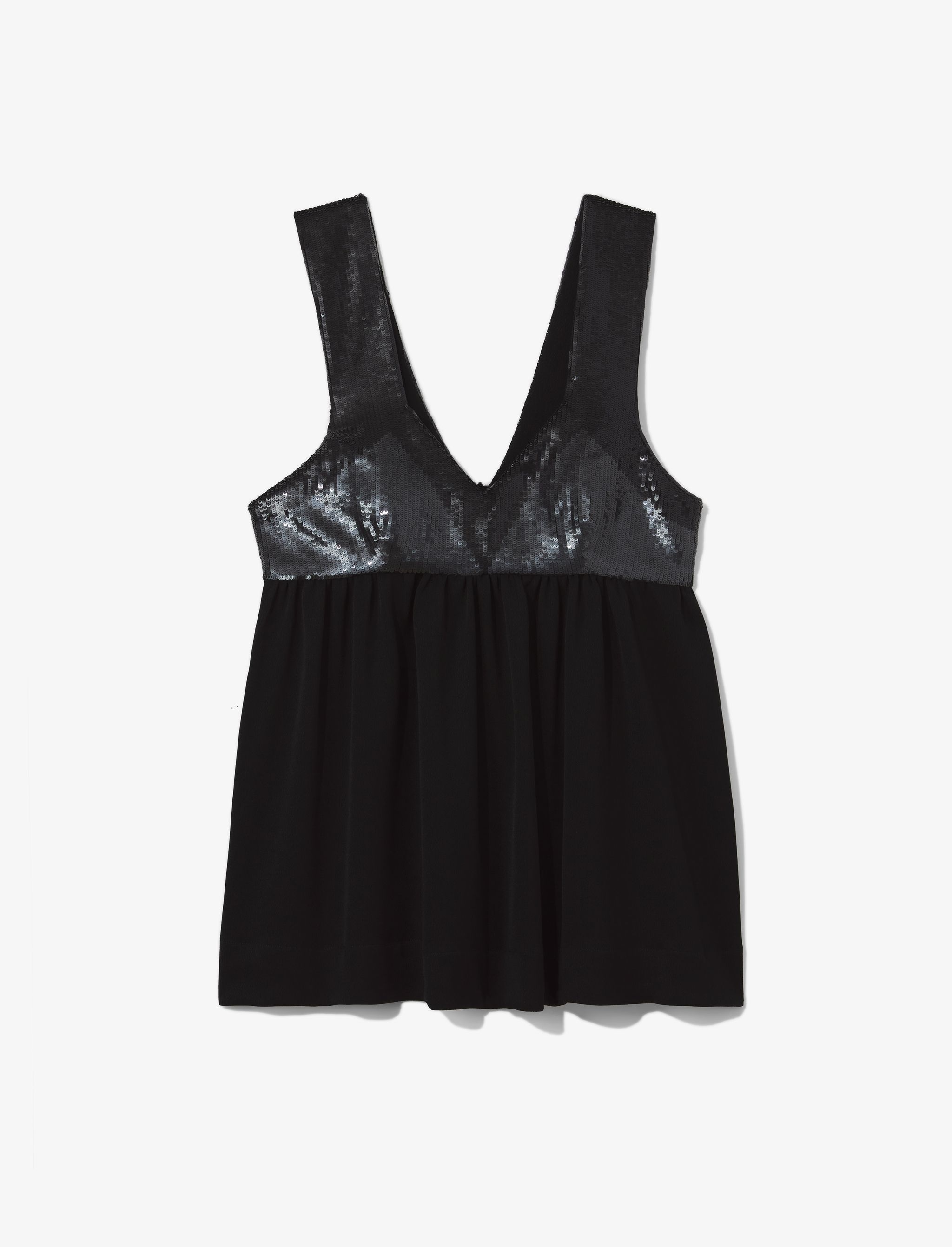 Re Edition Collection: Revisiting iconic looks from the Proenza Schouler runway archives. Fall 2002 Look 7: The Textured Crepe Sequin Tank features a V-neck and sequin embroidery at the bust and shoulder straps. Sleeveless. V-back with invisible zip closure. A-line silhouette. 77% acetate, 23% polyester. SKU: SP2314000BYE106001