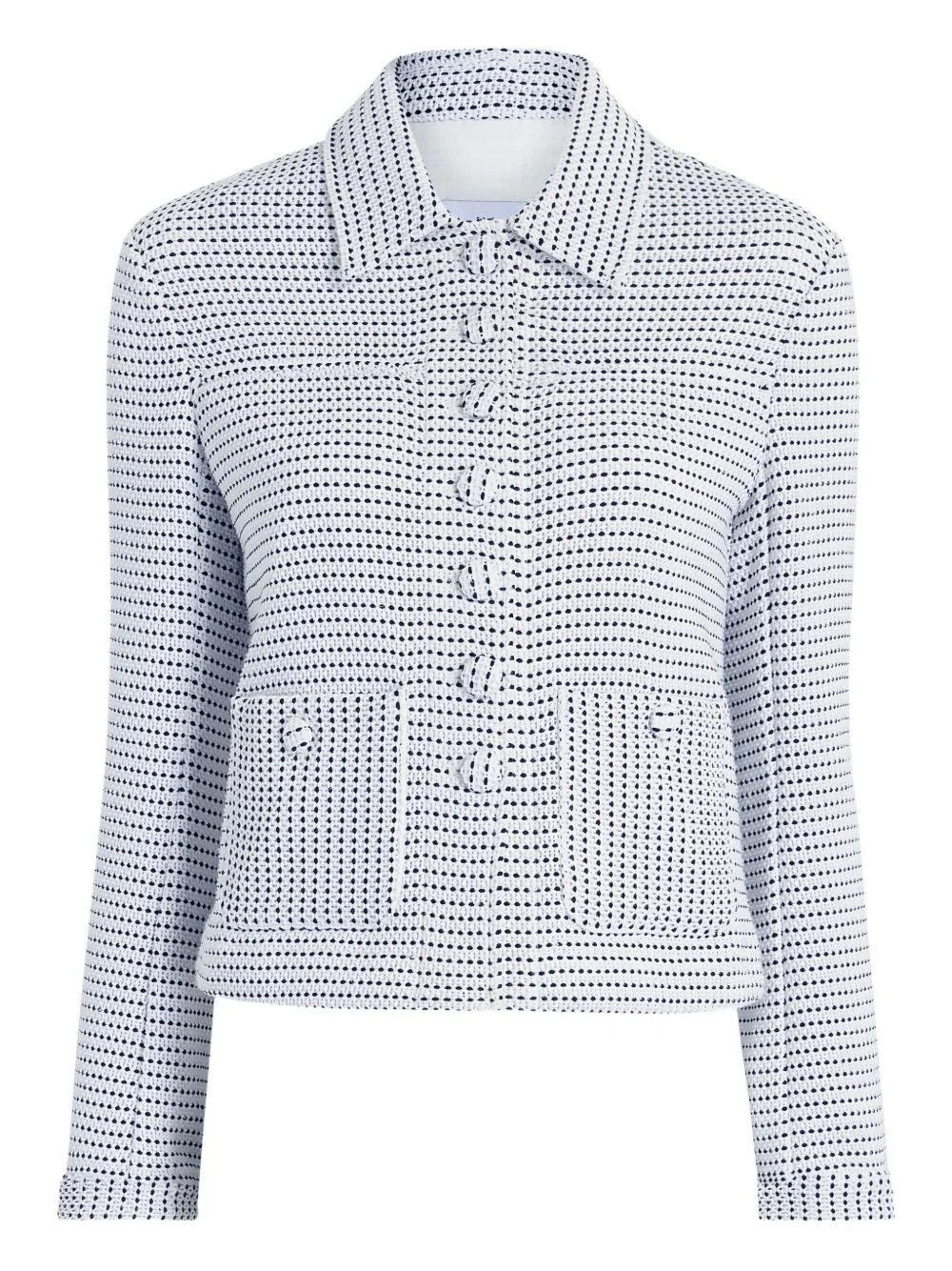 textured-pocket jacket Highlights - Off-white - Textured weave - Point collar - Button fastening - Welt pockets - Long sleeves Imported Composition Polyamide 54%, Cotton 32%, Polyester 14% Washing instructions Dry Clean Only