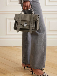 EDITORS'NOTES This scaled-down version of Proenza Schouler's iconic 'PS1' shoulder bag has all the features of the original, though it's sized for only the essentials. Made in Italy from taupe nubuck, it has perforated straps and a flip lock fastening to secure the front flap. Carry yours as a tote or cross-body, and stow your phone, cardholder and keys inside. SIZE & FIT Product measurements: - This item's measurements are: - Handle Drop: 6cm / 2.4in - Height: 16cm / 6.3in - Width: 25cm / 9.8in - Depth: 9cm / 3.5in DETAILS & CARE - Taupe nubuck (Calf) - Top handle, two detachable shoulder straps - Internal zipped pocket - Canvas lining - Flip lock-fastening front flap - Weighs approximately 2lbs/ 0.9kg