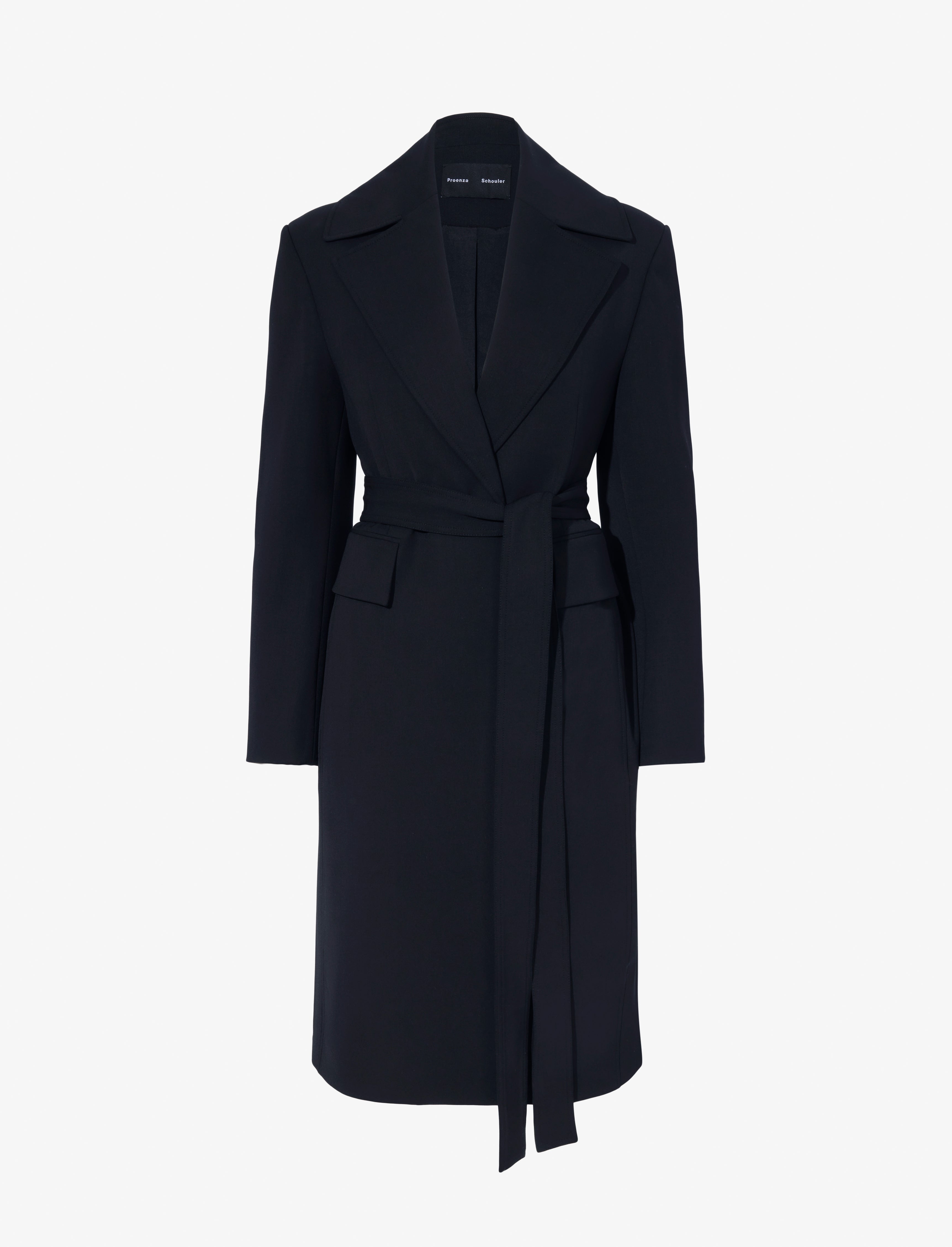 Details - Black - Notch lapels - Long sleeves - Side slip pockets - Self-tie waist belt - Tie-back detail - Double belt function - Back vent - Fully lined - 76% virgin wool, 22% polyamide,2% elastane - SKU: R2511005AW150001 Size & Fit - Model is 5'11'' with 31'' bust / 36'' hips. Wearing size 4 Care - 76% virgin wool, 22% polyamide,2% elastane - Dry clean only