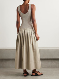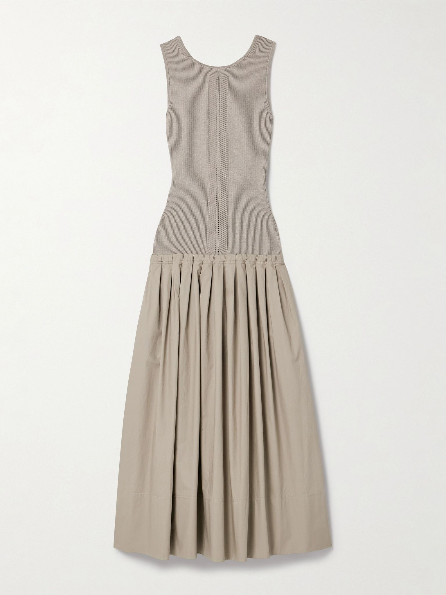 Proenza Schouler White Label's 'Gene' dress is designed with a close yet flexible pointelle-knit bodice made from a silk and cotton-blend. The cotton-poplin skirt flares out from the dropped waist and is sharply pleated to create volume and movement. Size & Fit - Fits true to size, take your normal size - Intended to be fitted at the bust and waist, loose at the hip - Dropped waist - Lightweight knit with non-stretchy skirt - Model is 175cm/ 5'9" and is wearing a US 4 Model measurements: - Bust: 75cm/ 29.5" - Waist: 60cm/ 23.5" - Hip: 93cm/ 36.5" Details & Care - Taupe silk and cotton-blend and cotton-poplin - Slips on - Fabric1: 50% silk, 50% cotton; fabric2: 100% cotton - Dry clean - Designer color: Granite