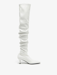 Our best-selling Trap Over The Knee Boots are now available in a 60mm heel height; the Trap Over The Knee Boots are crafted in supple nappa leather and can be adjusted to create a sleek or slouchy look. Designed to cover the entire length of the leg. Also available . Details • White • 60mm heel • Trapezoid-shaped toe • Upper: 70% polyurethane, 30% polyester; Sole: calf leather • SKU: PS43090B20171101 Size & Fit • True to size Care • Upper: 70% polyurethane, 30% polyester; Sole: calf leather • Please refer to care instructions provided with your order.
