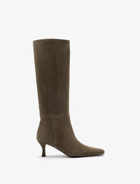 The Trap Boots are crafted in kidsuede and feature a knee-high silhouette with a slim, trapezoid-shaped toe. Details - Moss - Suede - Fluted mid heel - Trapezoid-shaped toe - Loose fit - Upper: 100% goatskin, sole: 100% calfskin - SKU: SH253070G004WG302 Size & Fit - True to size Care - Upper: 100% goatskin; Sole: 100% calfskin - Please refer to care instructions provided with your order.
