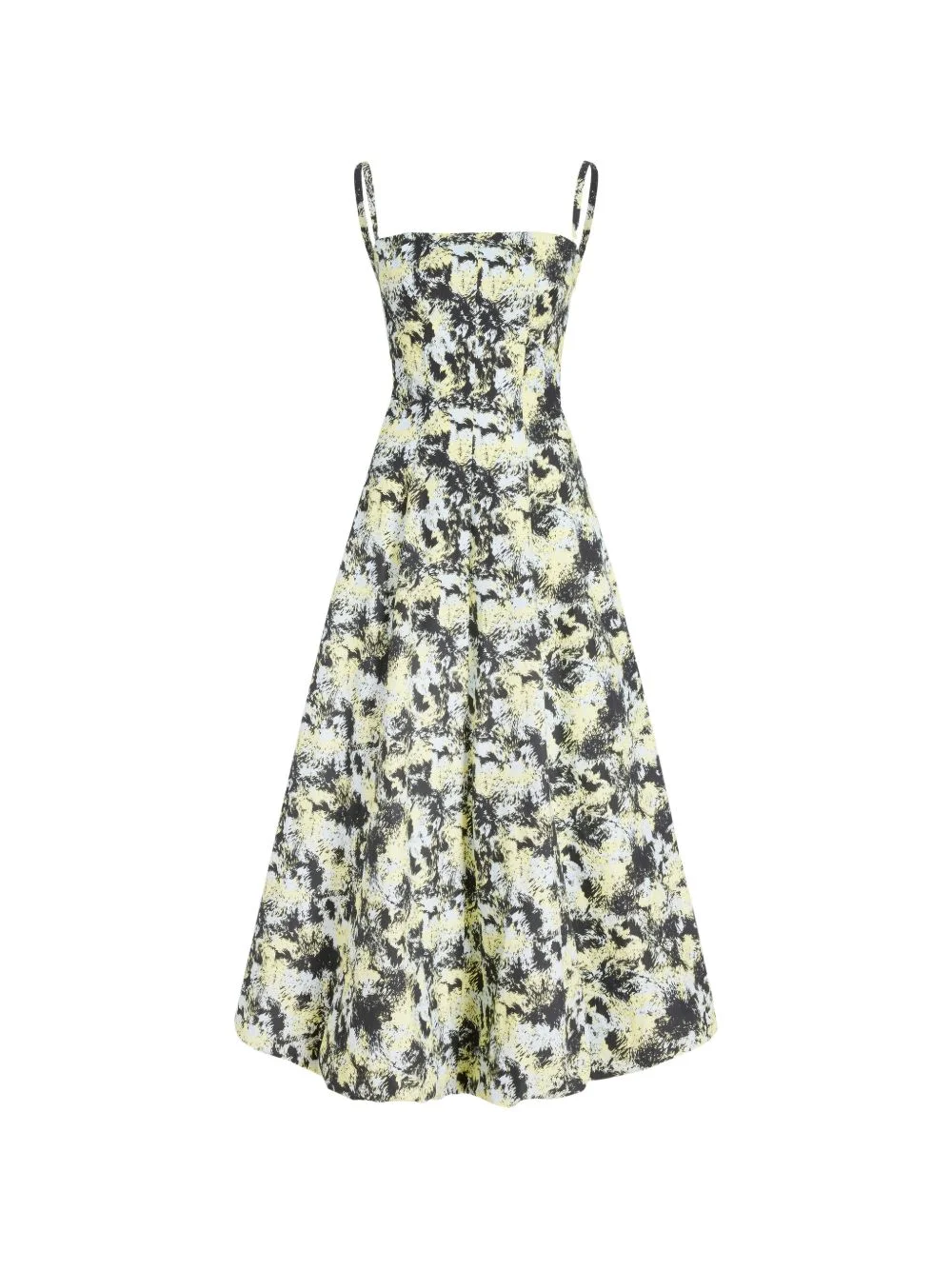 Tulah printed dress Highlights - Blue, black, and yellow - Floral print - Square neck - Adjustable shoulder straps - Side seam pockets Imported Composition Cotton 100% Washing instructions Dry Clean Only