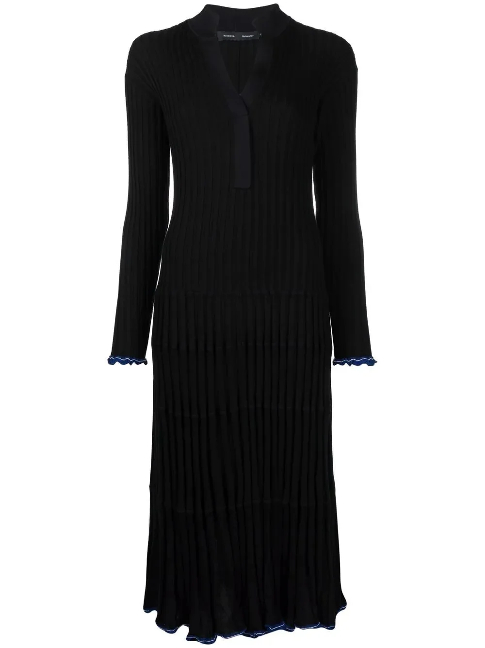 V-neck silk-blend dress Proenza Schouler's ruffle-trim dress is spun from silk and cashmere yarns for a lightweight and soft handle. The blue trim at the cuffs adds a flash of bright colour to the otherwise understated style. Imported Composition Silk 75%, Cashmere 13%, Viscose 8%, Nylon 4% Washing instructions Machine Wash