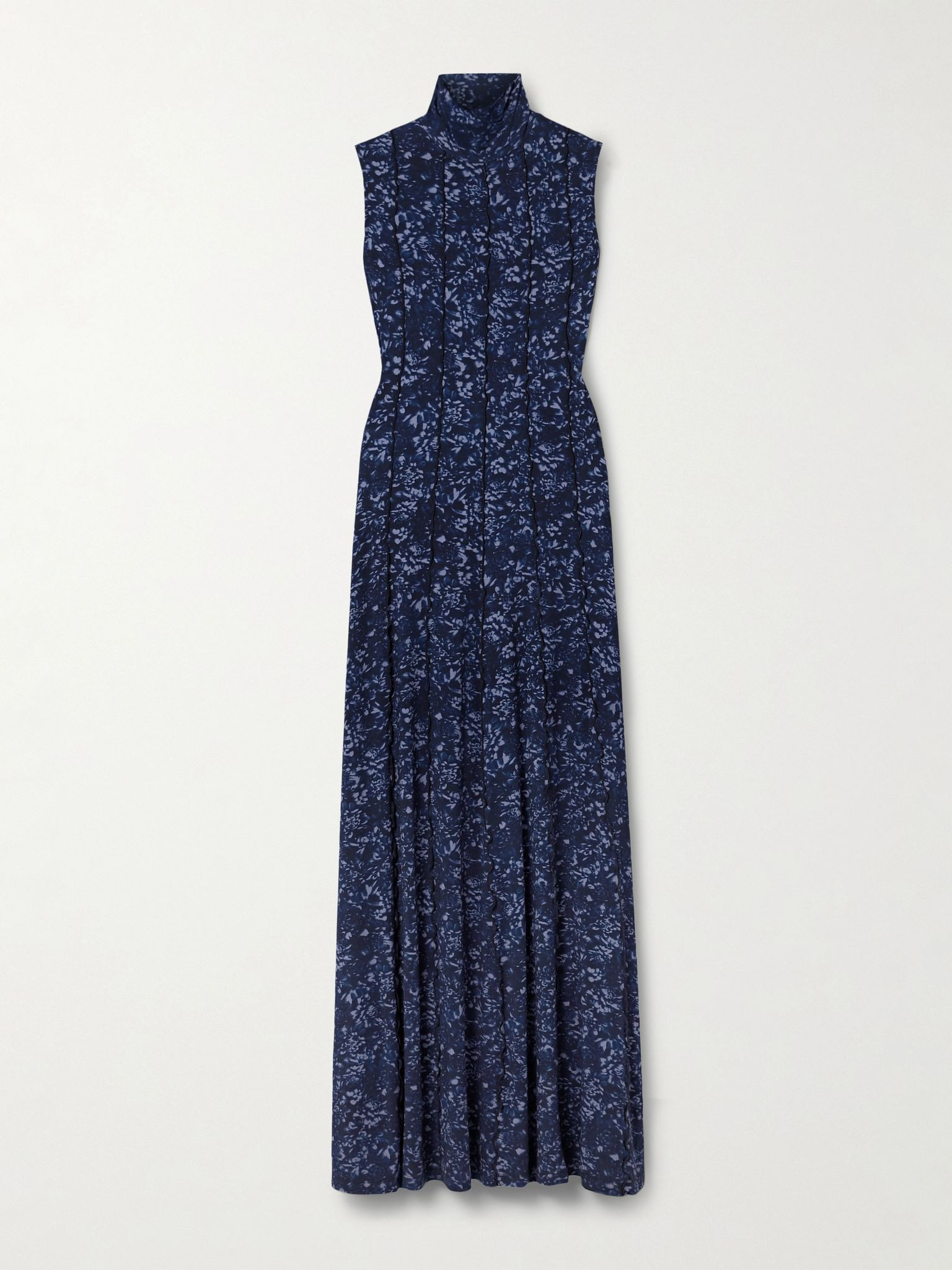 Valentina printed stretch-jersey turtleneck maxi dress Navy