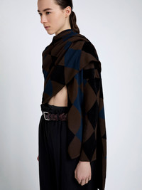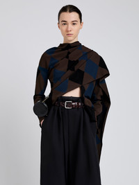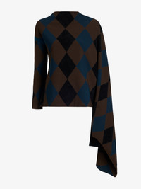 The Vanne Top in Argyle Velvet Knit is knitted in a tri-color argyle print, featuring a slim wrap silhouette secured at the shoulder with a long drape at the back. Details - Navy multi - Argyle print - Mock neckline - Long sleeves - Wrap silhouette - Shoulder drape - Slim fit - SKU: R2547286KY406466 Size & Fit - Model is 5'11'' with 30'' bust / 35.5'' hips. Wearing size Small Care - Dry clean only