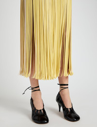The Veda Skirt in Faux Leather Fringe features a straight mid-length silhouette with fluid fringe detailing. Details - Pale yellow multi - High-rise - Two-tone fringe - Straight hem - Shift silhouette - 68% polyurethane, 40% polyester - SKU: R2535010LR274972 Size & Fit - Model is 5'11'' with 30'' bust / 35.5'' hips. Wearing size 4 Care - 68% polyurethane, 40% polyester - Spot clean only