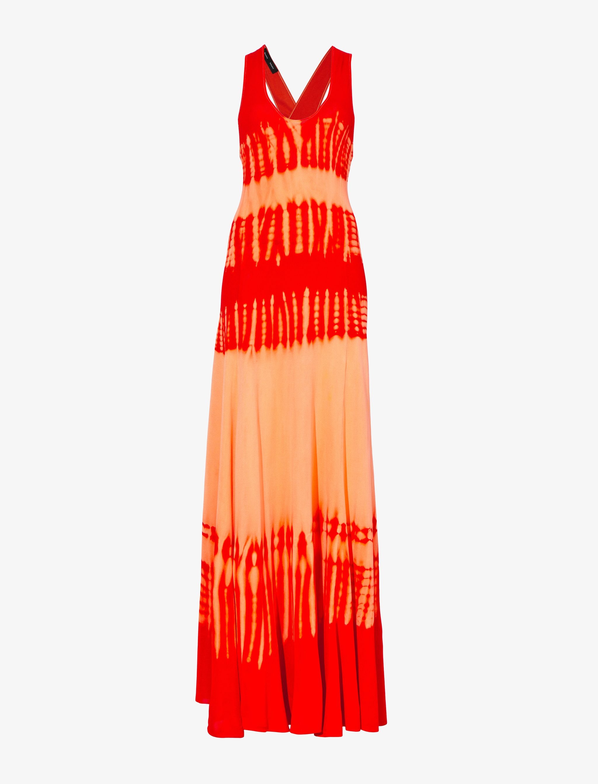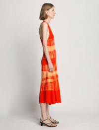 The Viscose Knit Tie Dye Dress is cut to an A-line silhouette and features an all-over tie-dye print in orange and red. Scoop neck. Sleeveless. Crossover back straps. Mid-length hem. 100% viscose. Please note: Due to the handcrafted nature of the dyeing technique, each piece is one of a kind and will vary slightly compared to the garment pictured. SKU: R2317039KY272965