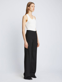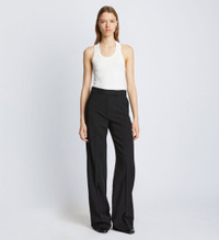 The Viscose Suiting Pants are tailored to a high-rise silhouette that falls straight through the leg. Finished with pressed creases at the front and back. Black High waist Slip side pockets Pressed creases at front and back Darts at back Welt back pockets Straight leg Concealed hook and zip front fastening 97% viscose, 3% elastane SKU: R2336007AY162001