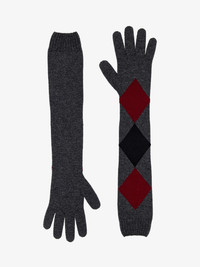 The Vivian Gloves are knitted in soft cashmere with an elbow-rise finish, featuring a tri-color argyle print. Details - Grey multi - Argyle print - Elbow rise - 100% cashmere - SKU: R2547292KK194062 Size & Fit - One size Care - 100% cashmere