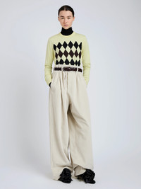 The Vivian Top in Argyle Knit is knitted in a tri-color argyle print, featuring a crew-neck silhouette complete with small ribbed trims. Details - Yellow multi - Lightweight - Argyle print - Crew neckline - Long sleeves - Ribbed-knit trims - Slim fit - 75% extrafine merino, 25% silk - SKU: R2547279KW190970 Size & Fit - Model is 5'11'' with 30'' bust / 35.5'' hips. Wearing size Small Care - 75% extrafine merino, 25% silk - Dry clean only