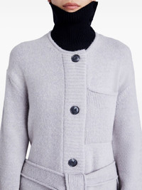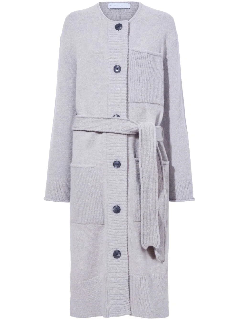 Lenora cardi-coat Highlights - Light grey - Wool blend - Knitted construction - Front button fastening - Collarless - Drop shoulder - Long sleeves - Tied waist - Multiple patch pockets - Side slits - Straight hem - Knee-length Imported Composition Polyamide 39%, Wool 31%, Acrylic 30% Washing instructions Dry Clean Only