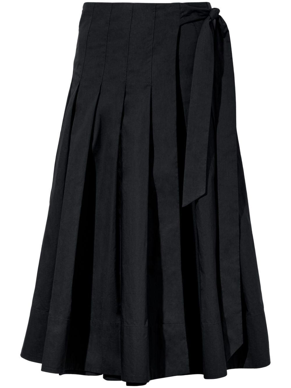 pleated wrap midi skirt Highlights - Black - Cotton - Poplin texture - Knife-pleat design - Wrap design - High-rise - Side tie fastening - A-line - Below-knee length - Curved hem Imported Composition Cotton 100%