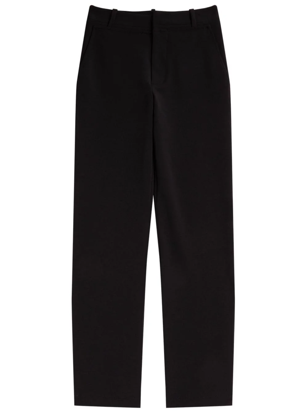 mid-rise straight-leg trousers Clean silhouettes and minimalistic designs are in Proenza Schouler White Label's DNA. A fine example are these black trousers, which come crafted from a soft design and fit to a wide leg silhouette for a contemporary feel. Imported Composition Polyester 78%, Rayon 14%, Spandex/Elastane 8% Washing instructions Dry Clean Only