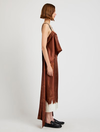 The Wilma Dress in Double Printed Silk Twill is cut to a fluid, elongated silhouette with a softly draped overlay. A large tie at the back allows for versatile styling—wear it knotted for definition or left untied for a more relaxed shape. Details - Sienna multi - Straight neckline - Slim shoulder straps - Draped bodice - Large self-tie at back - Center back zipper closure - Hooked back detail - Relaxed fit ^ - SKU: R2533011BSP178238 Size & Fit - Model is 5'10'' with 31'' bust / 34'' hips. Wearing size 4