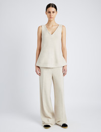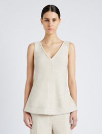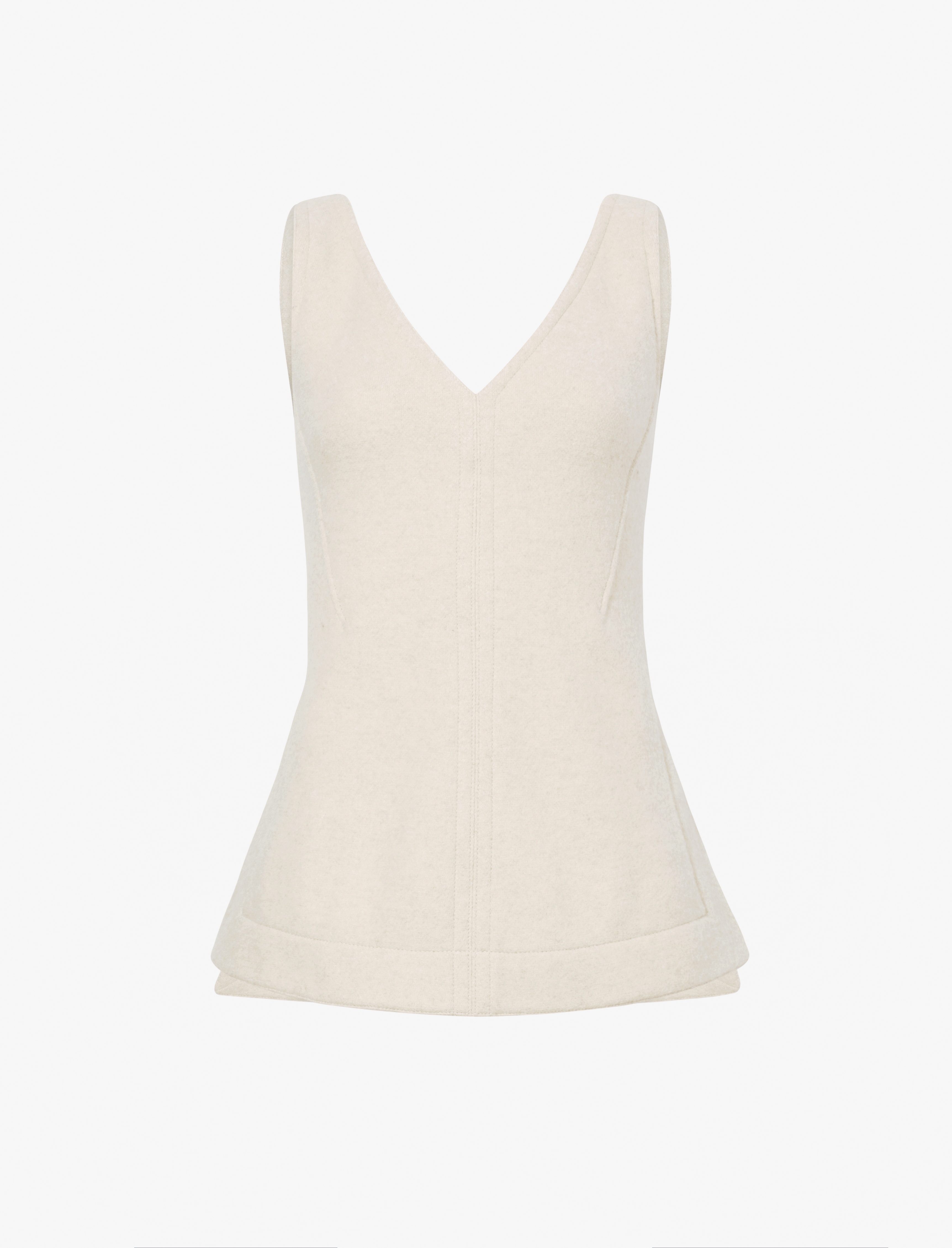 Details - Taupe melange - Wide V-neckline - Sleeveless - Paneled stitching - Center back zipper closure - A-line silhouette - Slim fit - 28% wool, 28% polyamide, 10% cashmere, 6% polyester - SKU: R2514009JW014289 Size & Fit - Model is 5'10'' with 32'' bust / 34'' hips. Wearing size 4 Care - 28% wool, 28% polyamide, 10% cashmere, 6% polyester - Dry clean only