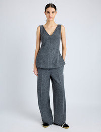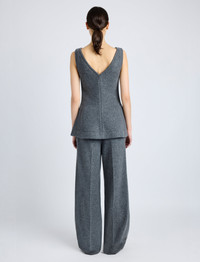 Details - Dark grey melange - Wide V-neckline - Sleeveless - Paneled stitching - Center back zipper closure - A-line silhouette - Slim fit - 28% wool, 28% polyamide, 10% cashmere, 6% polyester - SKU: R2514009JW014023 Size & Fit - Model is 5'10'' with 32'' bust / 34'' hips. Wearing size 4 Care - 28% wool, 28% polyamide, 10% cashmere, 6% polyester - Dry clean only