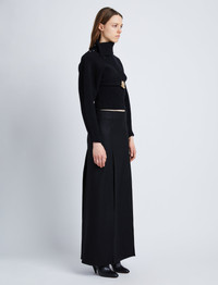 Fall 23 Runway Collection | Look 40 The Wool Felt Slit Skirt is cut to a fitted, high-rise silhouette. Falls to an ankle-grazing hem with carwash slits in the front and back. Details • Black • High waist • Slits at front and back • Straight mid-length hem • Concealed zip side fastening • 95% wool, 3% nylon, 2% elastane • SKU: R2345002AW133S001 Size & Fit • Model is 5'11"; with 31.5"; bust / 35"; hips. Wearing size 4 Care • 95% wool, 3% nylon, 2% elastane • Dry clean only