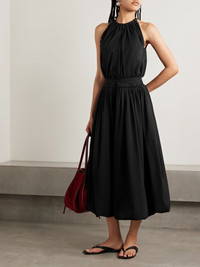 Wylie belted gathered poplin midi dress Black