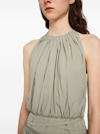 gathered halterneck midi dress Highlights - Sage green - Gathered detailing - Elasticated waistband - Sleeveless design - Side pockets Imported Composition Spandex/Elastane 100%, Cotton 100%, Nylon 100% Washing instructions Read Manufacturer Guidelines