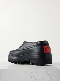 Proenza Schouler's mules fuse the brand's unique design codes with the function of SOREL’s ‘Caribou’ boots. They're made from leather with a waterproof seam-sealed construction and have a rubber toe cap for durability. The cushioned midsole and sockliner ensure optimal comfort and protection from the elements, while the molded EVERTREAD™ soles provide excellent traction. Size & Fit Fits true to size, please refer to Sorel size guide below: - US 5 = UK 3/ EU 36 - US 5.5 = UK 3.5/ EU 36.5 - US 6 = UK 4/ EU 37 - US 6.5 = UK 4.5/ EU 37.5 - US 7 = UK 5/ EU 38 - US 7.5 = UK 5.5/ EU 38.5 - US 8 = UK 6/ EU 39 - US 8.5 = UK 6.5/ EU 39.5 - US 9 = UK 7/ EU 40 - US 9.5= UK 7.5/ EU 40.5 - US 10 = UK 8/ EU 41 - US 10.5 = UK 8.5/ EU 41.5 - US 11 = UK 9/ EU 42 - US 12 = UK 10/ EU 43 Details & Care - Platform sole measures approximately 50mm/ 2 inches - Black rubber and leather (Cow) - Slip on
