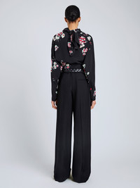 The Ysabelle Top in Printed Silk Viscose features an original hand-painted floral print, crafted to a slim silhouette with soft draping and tapered sleeves. Completed with a removable neck scarf. Details - Black multi - Original proenza schouler print - Double faced fabrication - Mock neckline - Removable neck scarf - Long sleeves - Side zipper closure - Straight hem - Slim fit - 56% viscose, 33% silk, 11% spandex - SKU: R2544001BYP297S002 Size & Fit - Model is 5'11'' with 32'' bust / 34.5'' hips. Wearing size 4 Care - 56% viscose, 33% silk, 11% spandex - Dry clean only