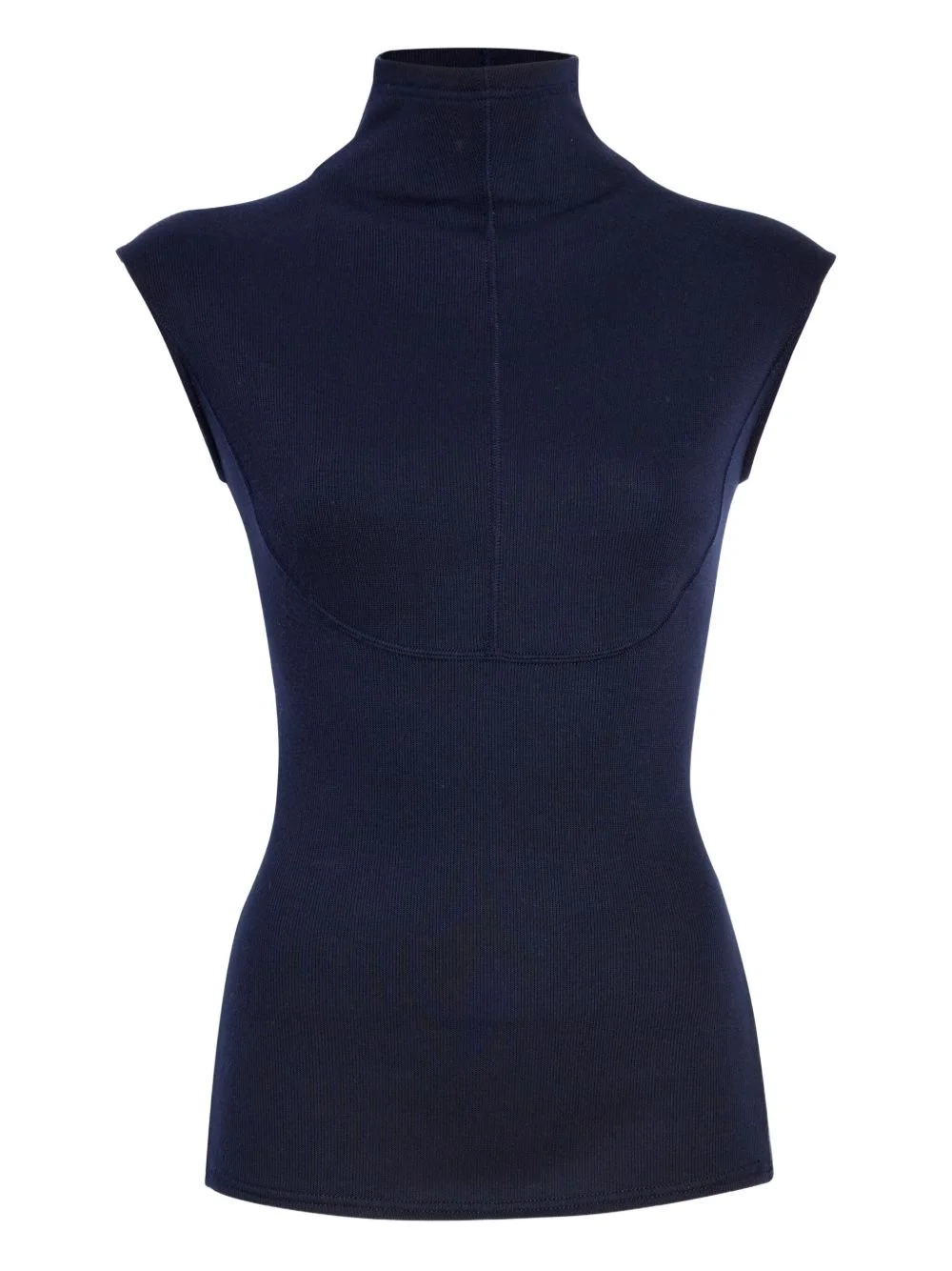 Zane brushed rib top Highlights - Navy blue - Rib knit - High neck - Sleeveless - Panelled construction - Curved seam Imported Composition Rayon 58%, Polyester 42% Washing instructions Read Manufacturer Guidelines