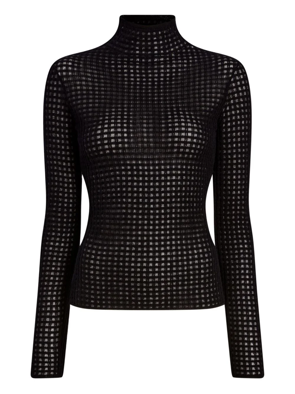 Zella check merino top Highlights - Black - Check pattern - High neck - Long sleeves - Semi-sheer finish - Fine knit Imported Composition Merino 100% Washing instructions Read Manufacturer Guidelines