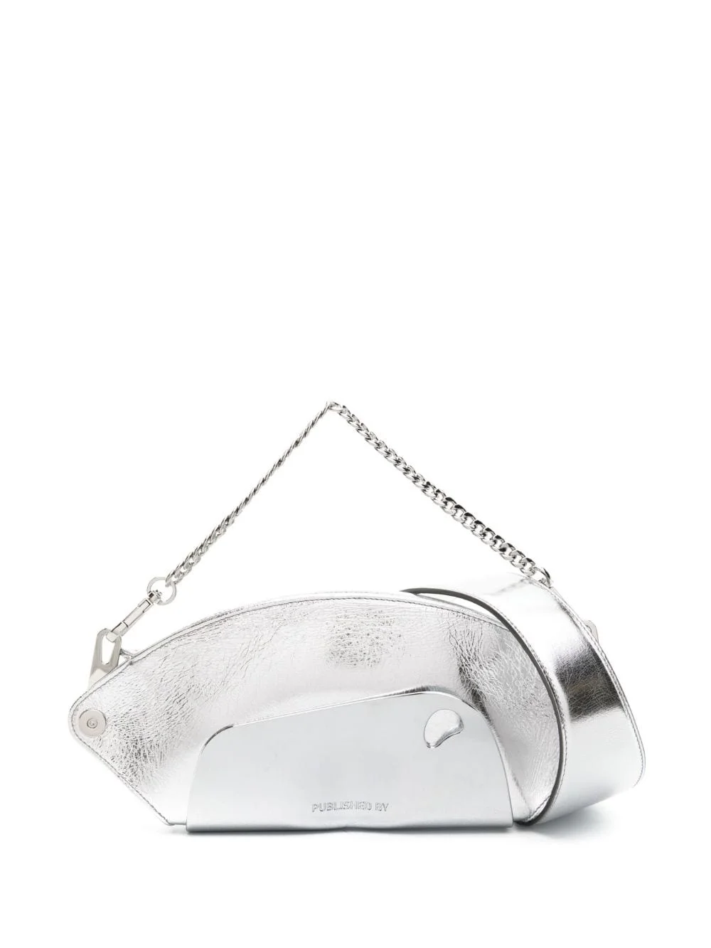logo-engraved metallic shoulder bag Highlights - Silver-tone - Calf leather - Metallic effect - Grained texture - Engraved logo to the fron and rear - Cut-out hardware detailing - Magnetic fastening - Top zip fastening - Detachable shoulder strap - Detachable chain-link shoulder strap - Suede lining - Main compartment - Silver-tone hardware - This piece comes complete with a protective dust bag. Made in United States Composition Outer: Calf Leather 100% SIZE & FIT Measurement DEPTH 1.18 in(3 cm) HANDLE 3.14 in(8 cm) HEIGHT 5.11 in(13 cm) STRAP 15.74 in(40 cm) WIDTH 8.66 in(22 cm)