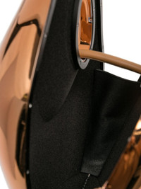 Phil's Third Eye mini bag Highlights - Rose bronze - Stainless steel - Metallic effect - Foiled finish - Asymmetric design - Main compartment - Leather strap - Adjustable shoulder strap - Chain-link shoulder strap - Velvet lining - This piece comes complete with a protective dust bag. Imported Composition Inner: Polyamide 100% Outer: stainless steel 100% Trims: Leather 100% SIZE & FIT Measurement DEPTH 3.54 in(9 cm) HANDLE 5.11 in(13 cm) HEIGHT 7.48 in(19 cm) STRAP 21.65 in(55 cm) WIDTH 5.51 in(14 cm)