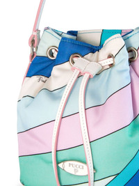 Yummy striped bucket bag Highlights - Multicolour - Leather - Diagonal stripe print - Logo plaque - Single top handle - Drawstring fastening - Main compartment Made in Italy Composition Outer: Nylon 100%, Leather 100%, Brass 100% SIZE & FIT Measurement DEPTH 3.93 in(10 cm) HEIGHT 6.29 in(16 cm) WIDTH 5.11 in(13 cm)