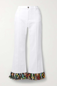 EDITORS'NOTES PUCCI's straight-leg pants are sure to get you in the summer mood. Cut from stretch-cotton drill, they're tipped with silk fringing and multicolored beads which complement the vivacious 'Marmo' print. Wear yours with kitten heels and let the hems swish around freely. SIZE & FIT - Fits true to size, take your normal size - Mid-rise, cut for a straight-leg fit - Mid-weight, stretchy fabric - Model is 177cm/ 5'10" and is wearing an IT 40 DETAILS & CARE - White stretch-cotton drill, multicolored silk - Button and concealed zip fastening at front - 98% cotton, 2% elastane; trim: 100% silk - Dry clean