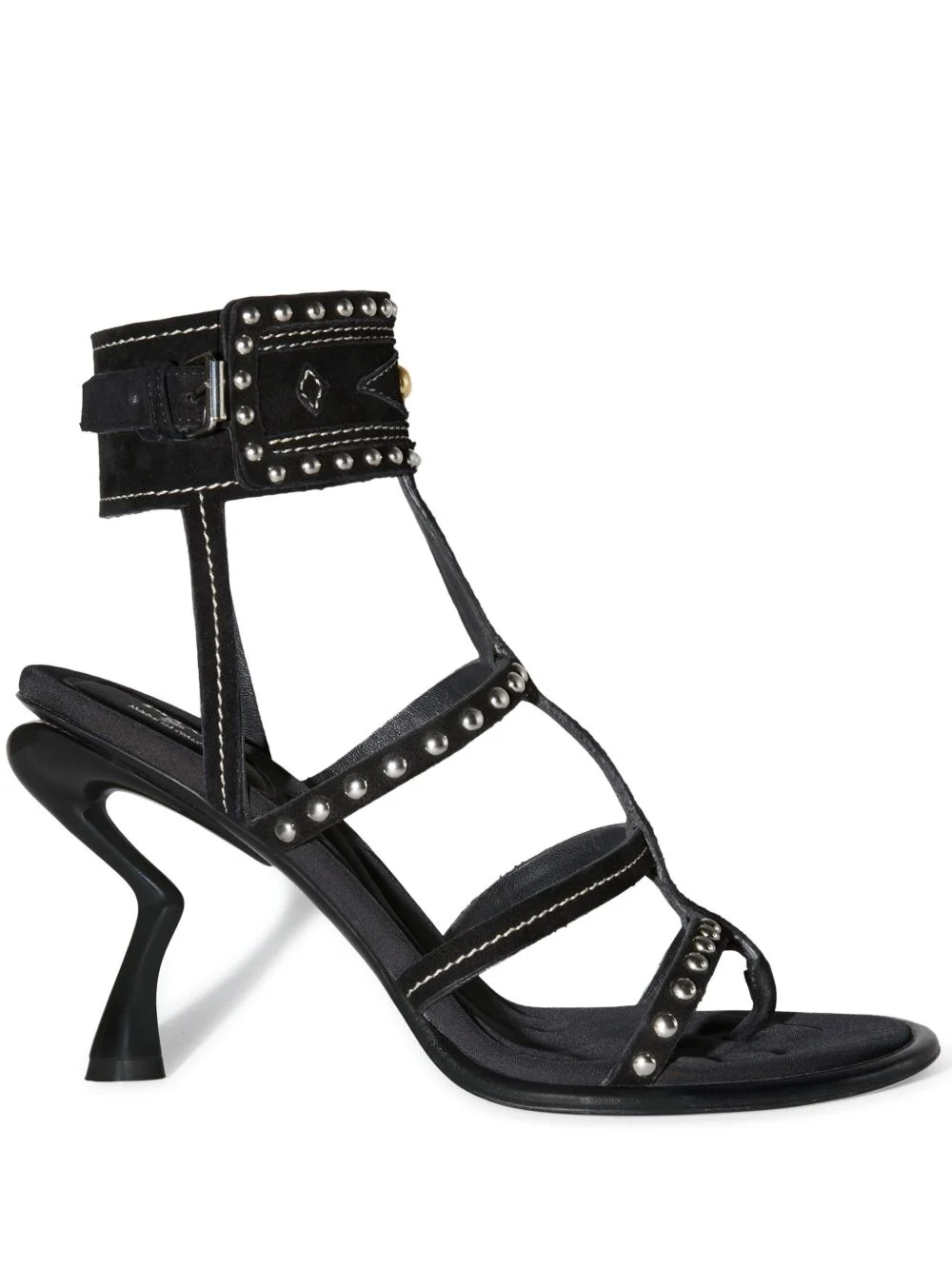 80mm Emilia sandals Highlights - Black - Buckle-fastening ankle strap - Multi-way strap design - Round open toe - 80mm sculpted heel Made in Italy Composition Sole: Leather 100% Lining: Fabric 100% Outer: Goat Skin 100% SIZE & FIT Measurement HEEL 3.14 in(8 cm)