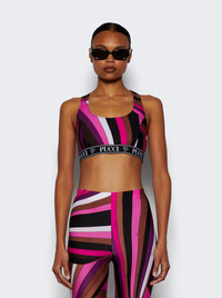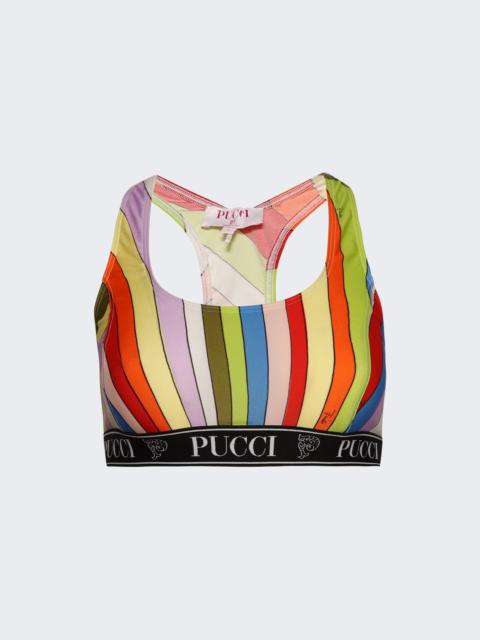 Details - Iride-print bra top - Scoop-neck, racerback silhouette - Logo-jacquard underband - Made from a lightweight, stretch fabric - Kindly note that this product, as well as many other Pucci items, is made using an allover print and it falls differently on each garment, so the product you will receive may differ from one in the picture. - 80% Nylon, 20% Elastane - Model is 5'9"/175cm and is wearing a size S Brand Style: 4UTP55-4U755 Designer/Brand: PUCCI