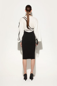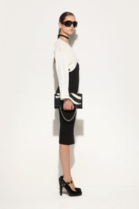 A perfect balance between essentiality and sophistication. This longuette dress combines the comfort of a T-shirt-style top with the sophistication of a Marmo print detail bottom, creating a contrast of textures and shapes with contemporary appeal. Made from a combination of linen, cotton, and compact viscose, the fabric offers a lightweight yet structured feel. The black and white design enhances the minimalist elegance of the garment, making it perfect for those seeking a distinctive and unmistakably iconic look. - Black and white - Longuette dress with t-shirt style top part - Bottom part with Marmo print inlay - Body: 55% Linen, 25% Cotton, 20% Viscose - Bottom part: 68% Viscose, 32% Polyamide - Gently dry clean. - Made in Italy - ID: 5HKH605H955A51 - Model is 178 cm tall and wears Italian size 38.