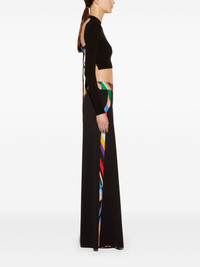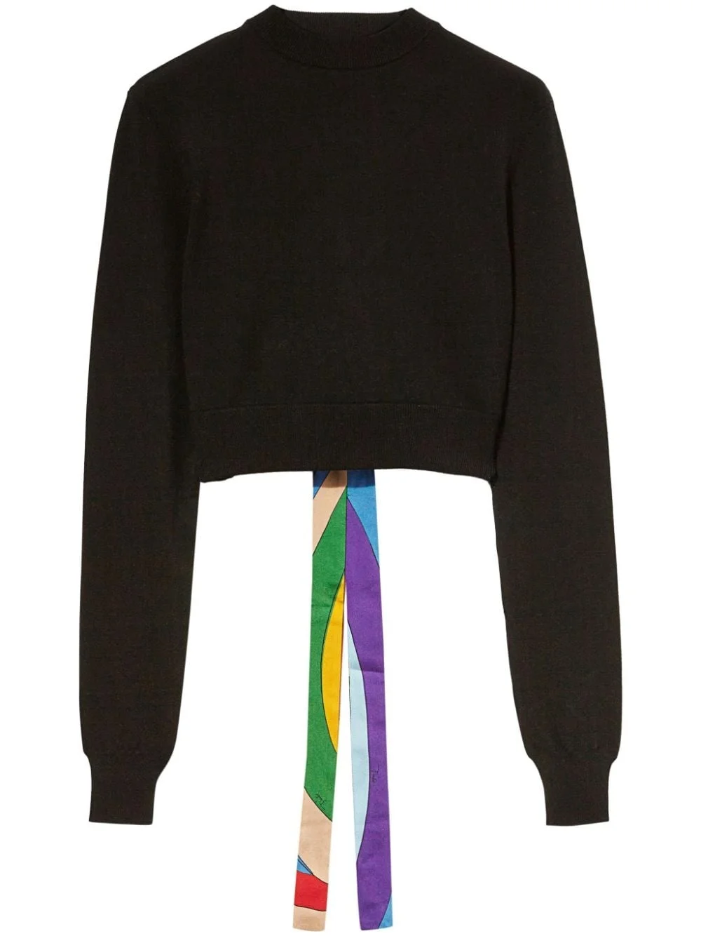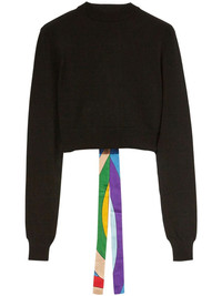 abstract-print trim cropped sweater Highlights - Black/multicolour - Jersey texture - Silk abstract print self-tie fastening to the rear - Cropped - Crew neck - Open back - Straight hem Made in Italy Composition Viscose 70%, Polyester 30%