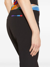 abstract-print trim cropped trousers Highlights - Black/multicolour - Abstract print trim - Cropped - Concealed front fastening - Low-rise - Front welt pocket - Raised seam detail - Two rear welt pockets - Flared hem - Ankle-length Made in Italy Composition Outer: Polyester 92%, Elastane 8% Lining: Acetate 67%, Polyester 33%