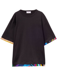 abstract-print trim T-shirt Highlights - Black/multicolour - Cotton - Jersey texture - Abstract print trim - Crew neck - Drop shoulder - Short sleeves - Straight hem Made in Italy Composition Cotton 100%