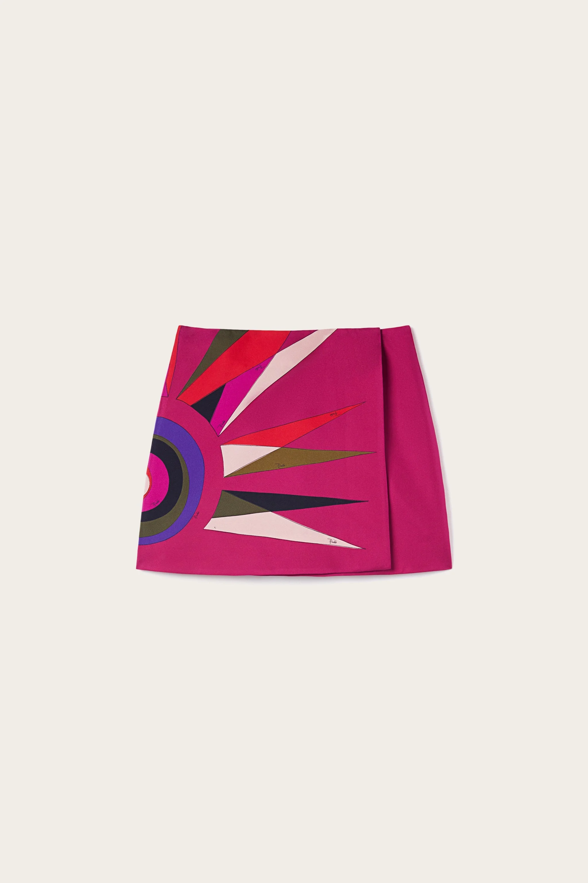 With its refined silhouette and clean lines, this wrap mini skirt is crafted from fine silk twill printed in multicolor Hawaii motif. The side button closure adds character and enhances the elegance of the piece. A perfect balance between archival inspiration and contemporary femininity. - To offer you a unique Pucci garment, we use an all-over print that makes the product unrepeatable. Therefore, the pattern print may vary from the one displayed in the photo. - Multicolor - Main fabric: 100% silk - Lining: 67% acetate - 33% polyester - Mini length - Wrap style - Side button closure - Dry clean only - Made in Italy - ID: 5URV365U841030