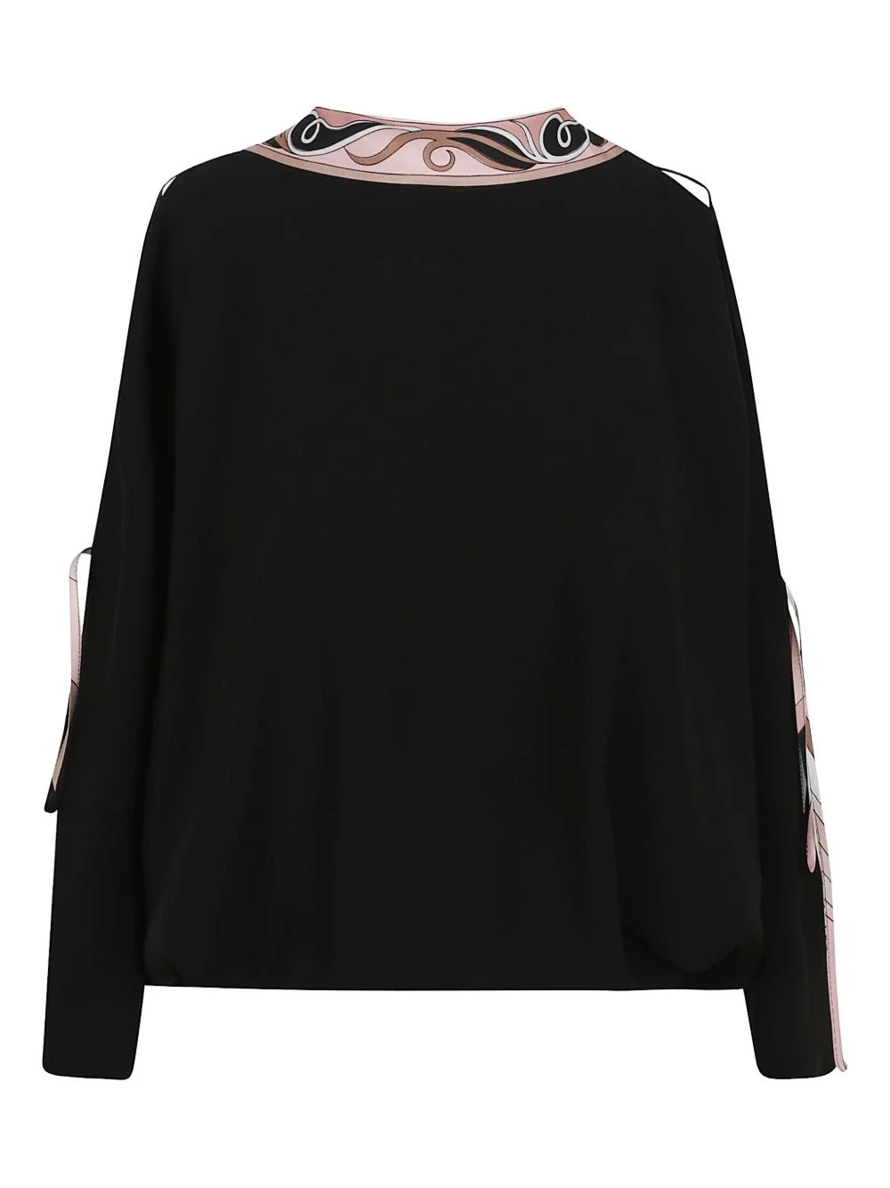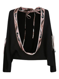 open-back blouse Highlights - Black - Rear tie fastening - Long sleeves - Contrasting trim Made in Italy Composition Viscose 100% Washing instructions Read Manufacturer Guidelines