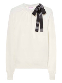 bow-detail sweater Highlights - White - Bow detail - Round neck - Long sleeves - Ribbed hem and cuffs Made in Italy Composition Viscose 70%, Polyester 30% Washing instructions Read Manufacturer Guidelines