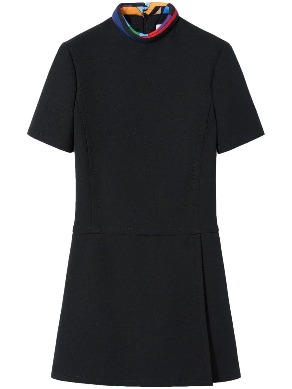 cady-texture mini dress Highlights - Black/multicolour - Cady texture - Concealed rear zip fastening - Abstract pattern print - Mock neck - Short sleeves - Fitted waistline - A-line - Straight hem - Thigh-length Made in Italy Composition Outer: Polyester 92%, Elastane 8% Washing instructions Read Manufacturer Guidelines