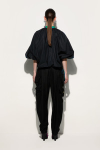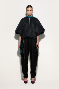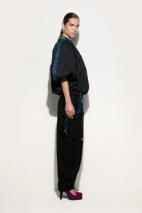 A sophisticated interpretation of utility style. These cargo-designed pants combine functionality and sophistication with their balloon fit, which creates volume and gently cinches at the ankle for a structured yet fluid effect.The four pockets add practicality, making them perfect for those who like a relaxed yet detail-oriented elegance. The black color makes them extremely versatile, ideal for any occasion. - Black - 100% Viscose - Pocket lining: 100% Cotton - Balloon fit - Ankle closure - Four pockets - Fluid fabric with soft finish - Gently dry clean - Made in Italy - ID: 5HRT655H648999 - The model is 178 cm tall and wears Italian size 38